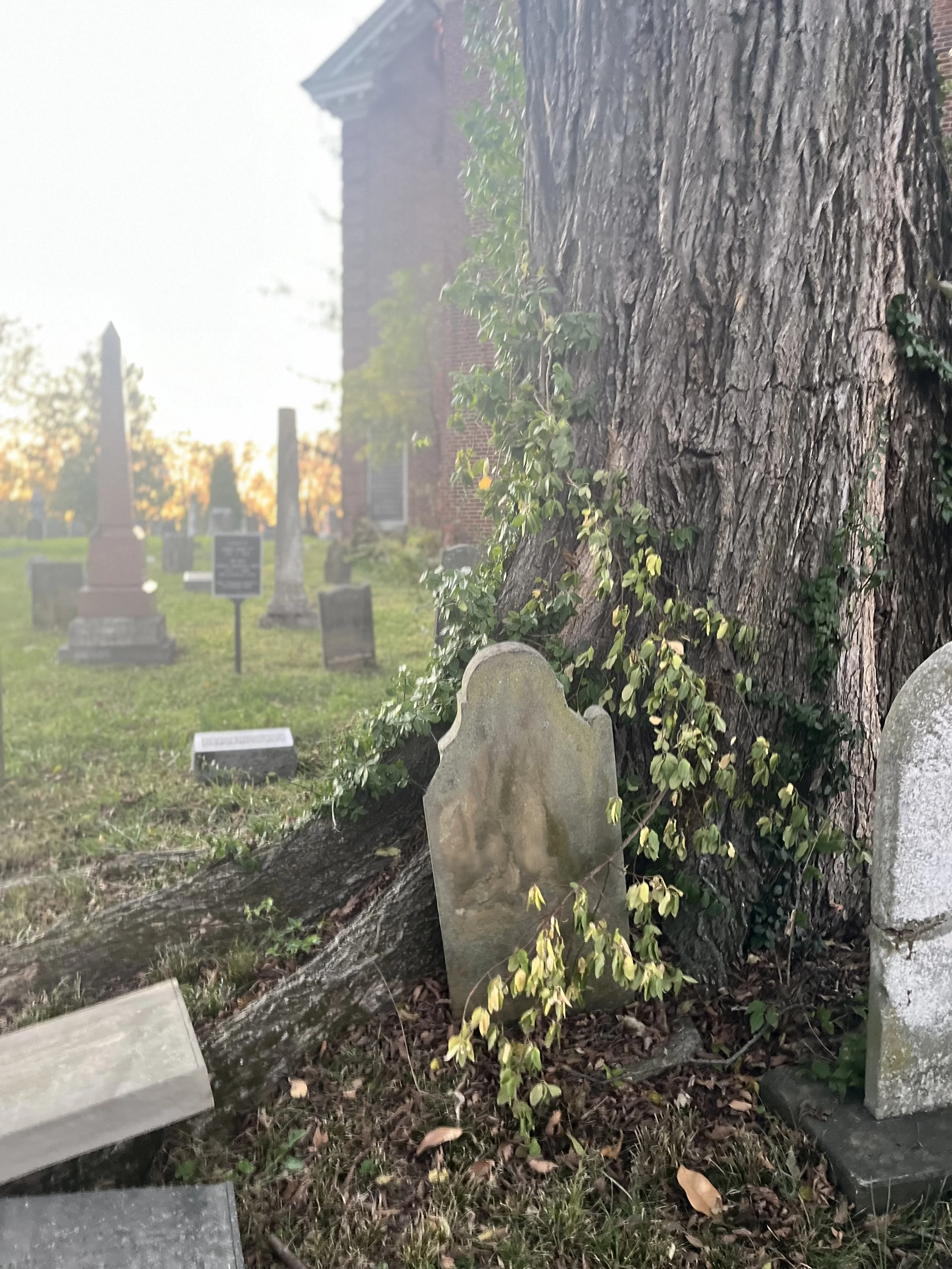 When we arrived, we noticed Halloween decorations placed lovingly on newer gravestones. After our practice concluded, a neighbor and his wife stopped by to introduce themselves. Those decorated stones, it turned out, marked the graves of their family members—including the child they lost at a young age. They were so glad to see people gathering in the space that they took time earlier that day to blow out the leaves and tidy up for us.