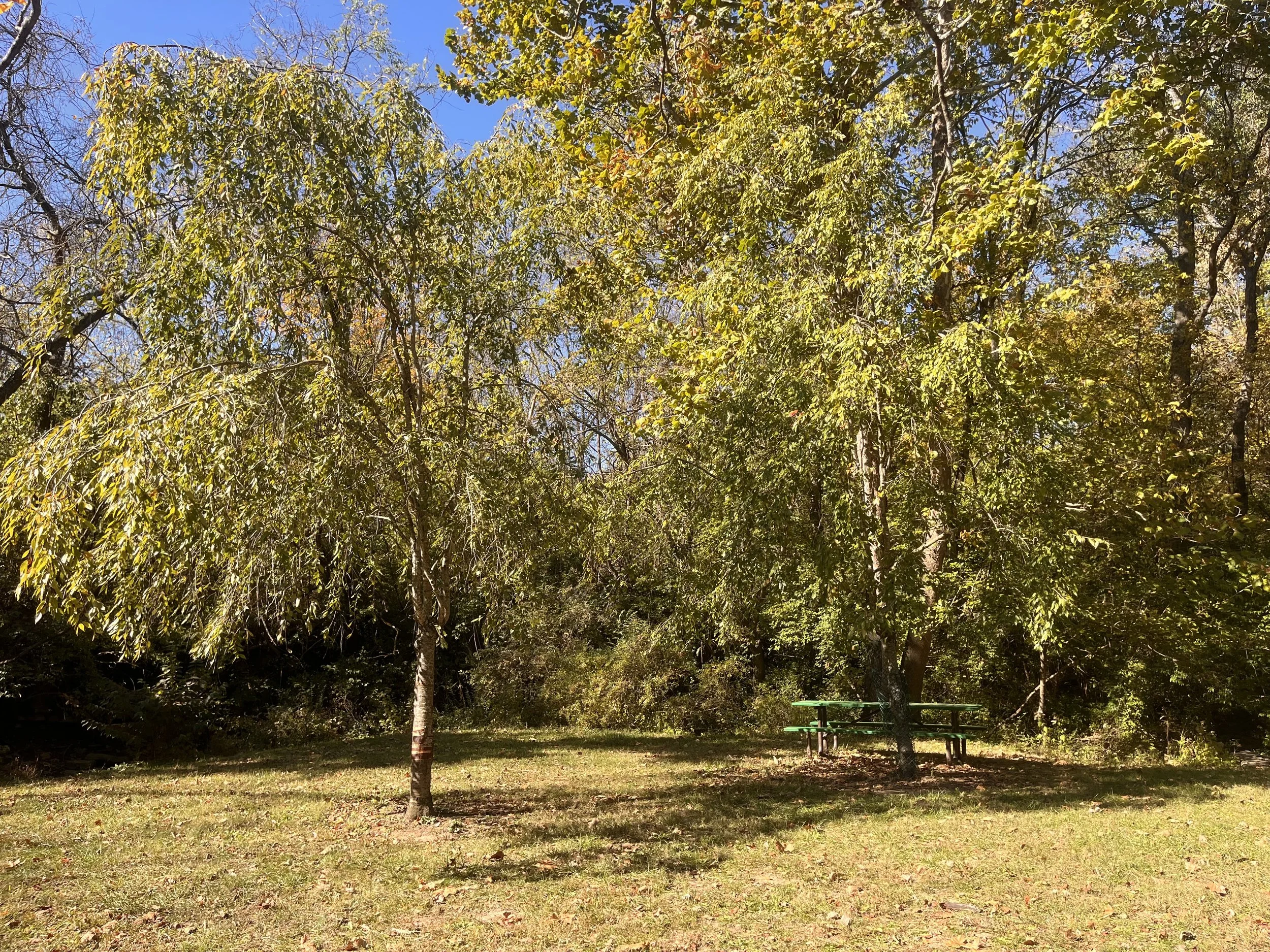 In warmer months, we like to gather under the trees by the Creekside Trail in French Park.